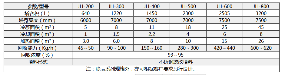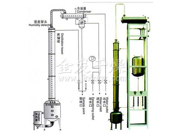 本設(shè)備有間歇式和連續(xù)式兩種形式,主要由塔釜、塔身、冷凝器、平衡罐、冷卻器、流量計等部件組成。