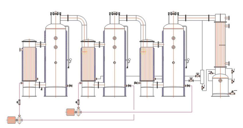 ◎節(jié)能效果顯著,比單效蒸發(fā)器節(jié)約蒸汽量30%。物料在密閉系統(tǒng)中蒸發(fā)濃縮,環(huán)境清潔舒適;且本系統(tǒng)設(shè)備獨(dú)特的除沫裝置,防止跑料現(xiàn)象。